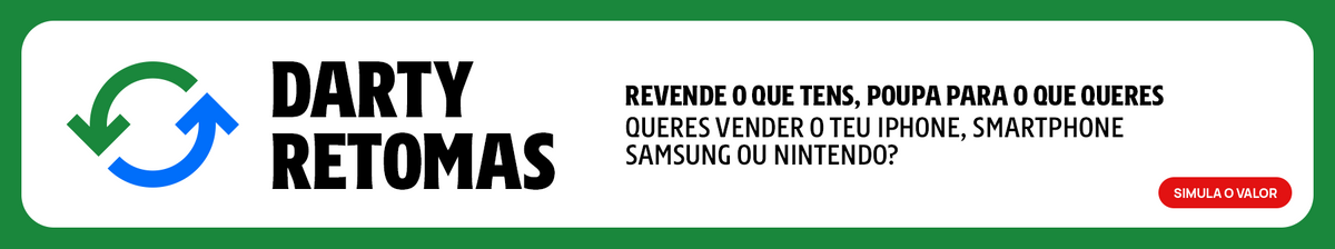 Aqui, podes devolver os teus equipamentos usados e contribuir para a economia circular: revalorizamos cada artigo, dando-lhe uma segunda oportunidade e colocando-o novamente à venda como produto recondicionado, com a garantia DARTY. Podes simular online retomas de Apple, smartphones ou consolas Nintendo e descobre quanto te damos por tudo isto!