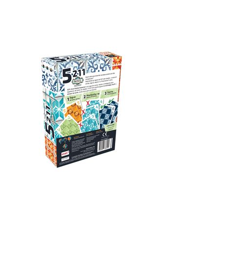 5211, o jogo de cartas rápido com um método único de pontuação que recompensa o jogador mais inteligente, encontra-se agora disponível com um novo tema, baseado no premiado jogo de sucesso Azul! As cartas são adornadas com cinco belos padrões de cores dos azulejos familiares da arte do Azul. Cada jogador começa com uma mão de cinco cartas.