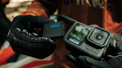 Com as baterias Enduro incluídas, grava até 2,5 horas a 1080p30 ou mais de 1,5 horas a 4K30/5.3K30 por bateria, garantindo horas de filmagem contínua mesmo em condições extremas.