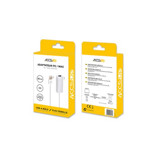 Adaptador USB 2.0 para Ethernet (RJ45) Accsup - Branco