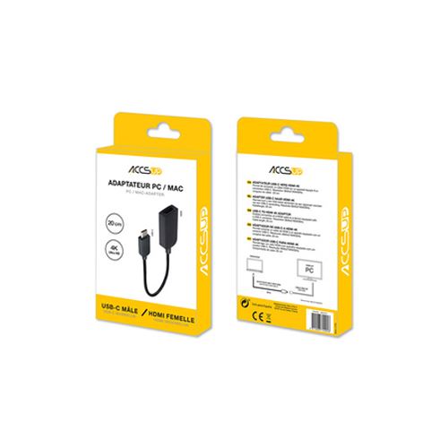 Adaptador Accsup USB-C para HDMI 4K 20cm - Preto