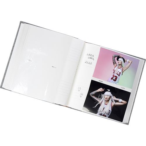 Capacidade para 200 fotografias no formato 11 x 15 cm, com sistema slip-in para inserção rápida e segura.