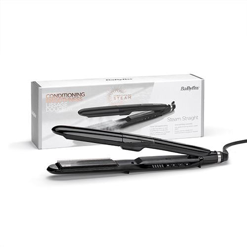 O Steam Straight da BaByliss tem placas flutuantes extra largas com revestimento cerâmico para um alisamento rápido, suave e sem fricção. A tecnologia de vapor hidrata a fibra capilar e deixa o cabelo mais brilhante e saudável. Ideal para todos os tipos de cabelo graças aos 5 níveis de temperatura. Inclui acessórios para uma experiência profissional completa em casa.