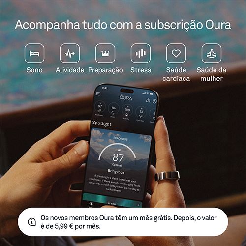 Insights personalizados de saúde | Laboratórios Oura | Sessões guiadas para meditação, sono e muito mais | Relatórios semanais, mensais, sazonais, anuais (Resumo do ano) e de aniversário | Integração com aplicações de saúde e bem-estar de terceiros, como Apple Health, Health Connect da Android e Strava