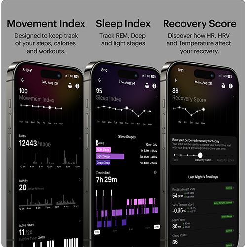 Acorde com os seus conhecimentos sobre o Sono: o Índice de Sono, inteligentemente concebido para ser a sua única métrica para a saúde do sono, avalia a duração total do sono, o ritmo cardíaco em repouso e a tranquilidade, criando uma imagem abrangente da qualidade do seu sono.