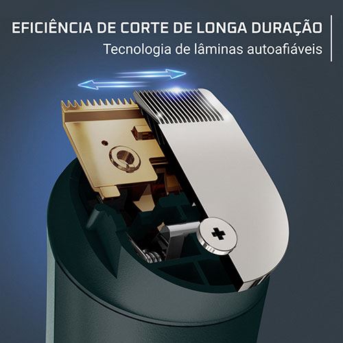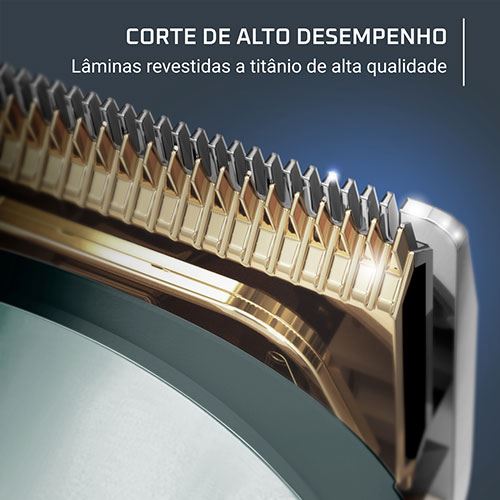 móvel revestida a titânio de longa duração, juntamente com a tecnologia de lâmina autoafiável. Desfrute de uma estilização personalizada no seu cabelo e barba, bem como de resultados precisos no seu corpo, graças a um