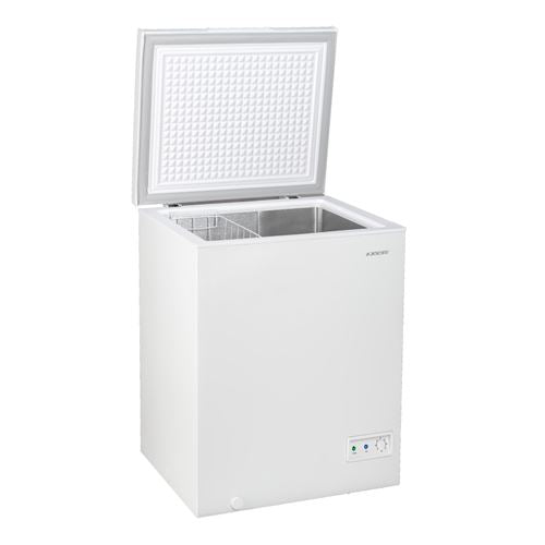Congelador horizontal Jocel, com capacidade total de 140 litros e classe de eficiência energética F. O seu consumo anual de energia é de 226 kWh. Este congelador pode ser facilmente encaixado em qualquer zona da tua cozinha. Nível de ruído 40dB,, Consumo Energético (Kw-h/24h) 0,619Kw, Potência Consumo (Kwh/ano) 226, Temperatura de -12 a -26ºC, Peso líquido/bruto 25/28Kg, Gás/carga R600/58g, Classe Protecção I, Classe Climática ST, 220-240V~50Hz.