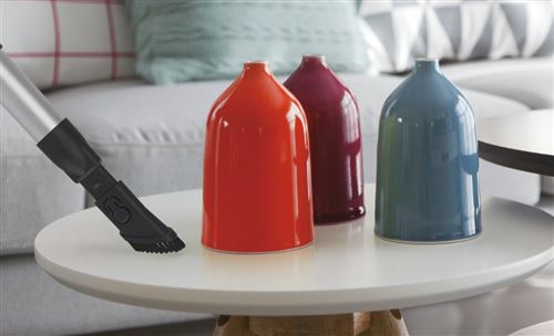 Acessórios a bordo: O acessório 2 em 1 que combina um acessório para cantos e para áreas de acesso difícil e uma escova para pó para superfícies duras. É convenientemente arrumado a bordo para aceder com facilidade.
