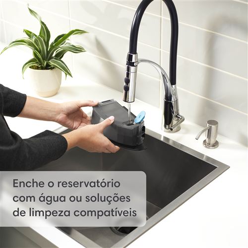 Troca para o depósito Roomba Combo™ para lavar até 55m2 usando água ou uma solução de limpeza.