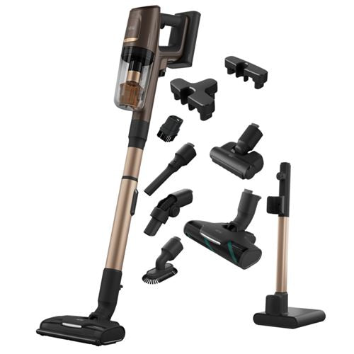Aspirador vertical da Série 8000 com 35 minutos de autonomia, 3 velocidades, 25,2 V, bateria de lítio de alta densidade, escova UltimatePower Fluffy, escova UltimatePower Bristle, escova PetPro Plus, escova para móveis delicados, acessório com ângulo para aspiração em altura.