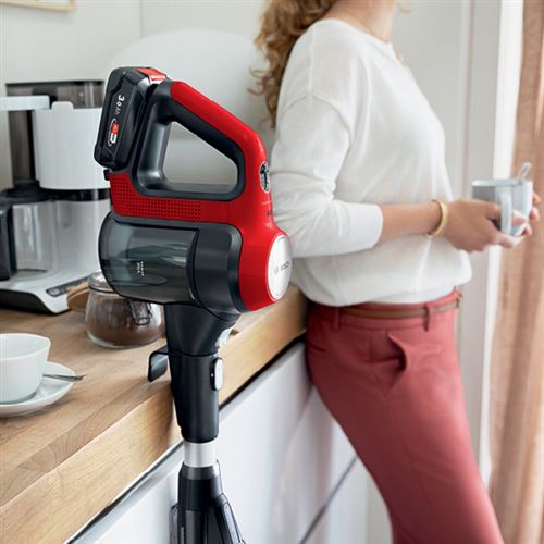 Com um peso de apenas 3,80 kg, este aspirador vertical combina mobilidade e potência, tornando-se ideal para alcançar até mesmo os cantos mais difíceis. O modelo oferece três modos de limpeza — eco, turbo e auto — que ajustam automaticamente a potência de acordo com o tipo de pavimento, garantindo a máxima eficiência em cada utilização. Equipado com uma bateria Bosch comutável de 3,0 Ah, compatível com outros aparelhos Bosch das gamas Casa e Jardim, este aspirador assegura uma autonomia de até 40 minutos, permitindo uma limpeza contínua sem interrupções.