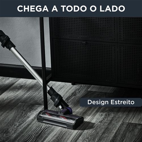 O design slim permite chegar a todas as zonas da casa, até mesmo as mais estreitas para uma limpeza completa.