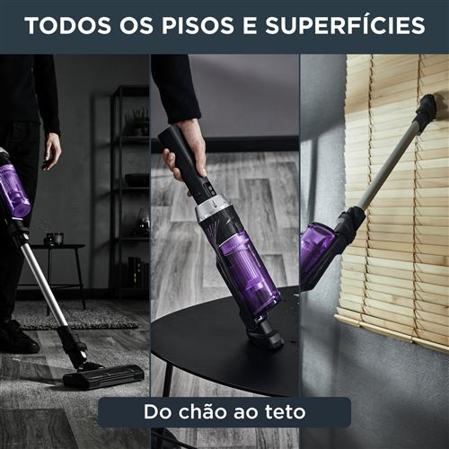Aspirador vertical sem fios tudo em 1. Potência de limpeza ultra leve, todos os pisos e superfícies. Autonomia (utilizando o mini aspirador na posição eco) até 40 min.