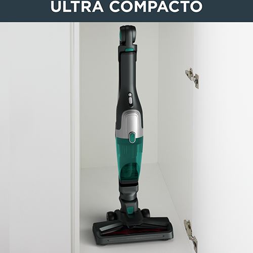 O aspirador X-Trem Compact oferece extrema flexibilidade e performance de limpeza fiável, combinada num formato ultra compacto. Este inovador aspirador 2 em 1 foi desenhado para chegar mesmo a zonas estreitas com total flexibilidade, graças à sua bi-direcionalidade e tecnologia Flex não precisa de se dobrar. Ideal para uma limpeza sem esforço. Muito fácil de arrumar graças à pega dobrável.