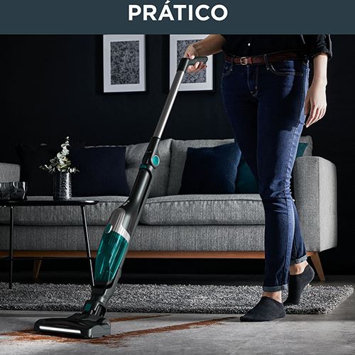 MULTI SUPERFÍCIE: Função 2 em 1: chão e mini aspirador, inclui ainda uma escova para sofás para uma limpeza profunda e acessório para frestas e rodapés para chegar a todos os cantos.
