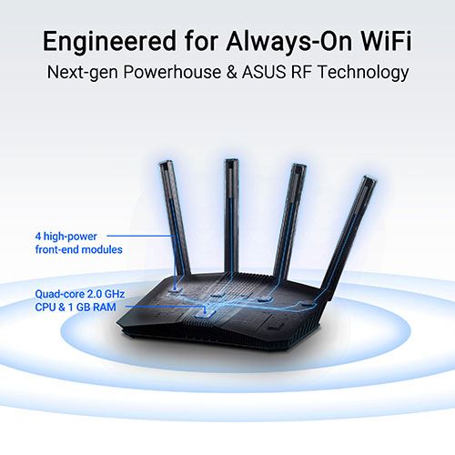 A presença de quatro antenas externas assegura uma cobertura de sinal ampla e robusta, essencial para casas de grande dimensão ou com múltiplos andares. Apesar de não incluir MU-MIMO, o Asus RT-BE58U compensa com a sua capacidade de se integrar numa rede AiMesh, possibilitando a criação de uma rede Wi-Fi extensível e altamente adaptável às suas necessidades.