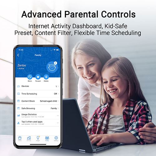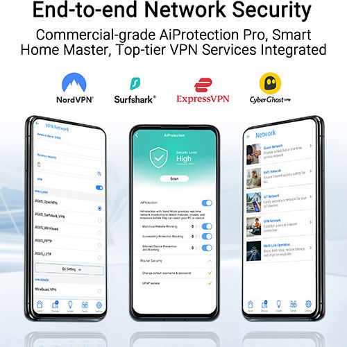 A segurança é uma prioridade, e o Asus RT-BE58U não dececiona. Com a funcionalidade de Controlo Parental, pode gerir o acesso à internet de forma simples e eficaz, garantindo uma navegação segura para toda a família. A Rede de Convidados é outra característica útil, permitindo criar uma rede temporária para visitantes sem comprometer a segurança da sua rede principal.