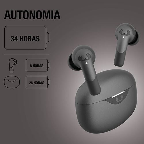 Auriculares: em modo reprodução: 8 h| Em Modo ANC: 5h | Caixa de Carregamento em modo reprodução: 26h|Caixa de Carregamento modo ANC: 23h