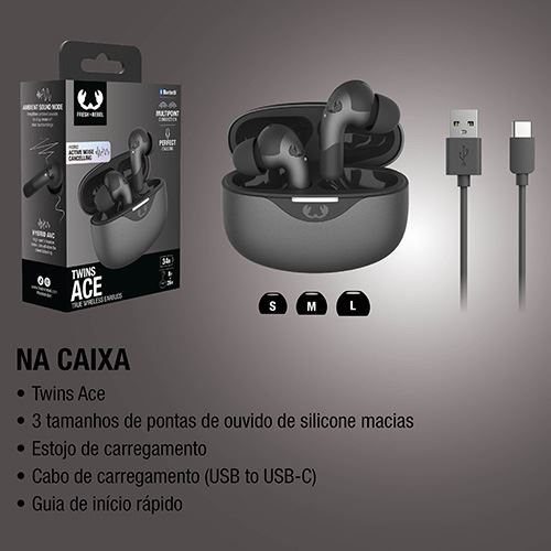 Os auscultadores Twins Ace True Wireless oferecem uma experiência auditiva de cortar o fôlego. Liga a função de cancelamento de ruído ativo híbrido para mergulhar no ambiente das tuas playlists favoritas e utiliza a conexão Bluetooth multiponto para passar facilmente de um dispositivo para outro. Desfruta de chamadas límpidas graças aos microfones ENC duplos, e da qualidade sonora com graves profundos, médios nítidos e agudos cristalinos (típicos da Fresh 'n Rebel) durante 34 horas contínuas.