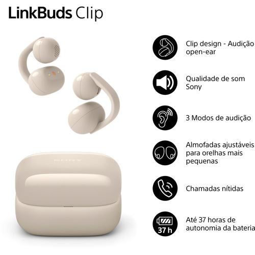 Auriculares True Wireless Bluetooth Sony LinkBuds Clip WF-LC900C - Bege