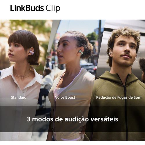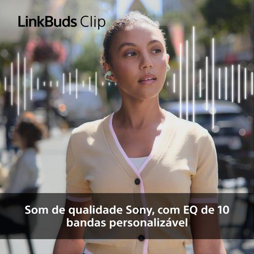 Os LinkBuds Clip oferecem chamadas nítidas em modo mãos-livres graças à tecnologia de condução óssea, que deteta com precisão a voz do interlocutor mesmo em ambientes barulhentos, e à redução de ruído por IA, que elimina ruídos de fundo indesejados.