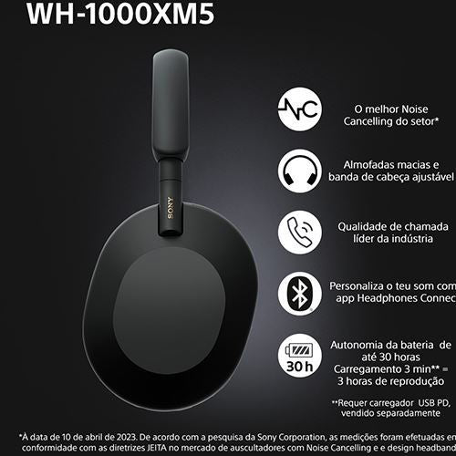 Auscultadores Noise Cancelling Bluetooth Sony WH-1000XM5SAB - Preto