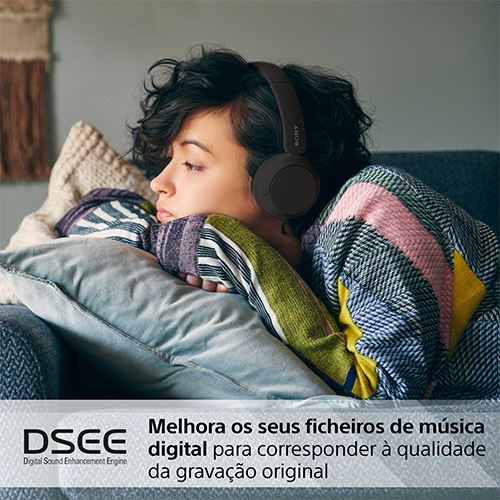 Com base na experiência de áudio da Sony, os auscultadores WH-CH520 proporcionam um som nítido e equilibrado. Utilizando o Digital Sound Enhancement Engine (DSEE), os auscultadores restauram o áudio comprimido, aproximando-o da gravação original para uma experiência de audição mais rica.