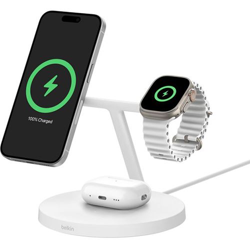 Base de Carregamento Wireless QI2 3 em 1 com MagSafe Belkin BOOST↑CHARGE Pro™ - Branca