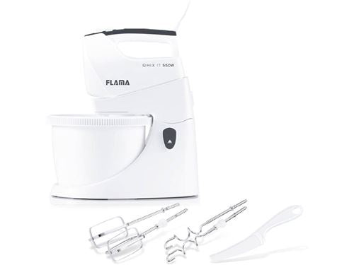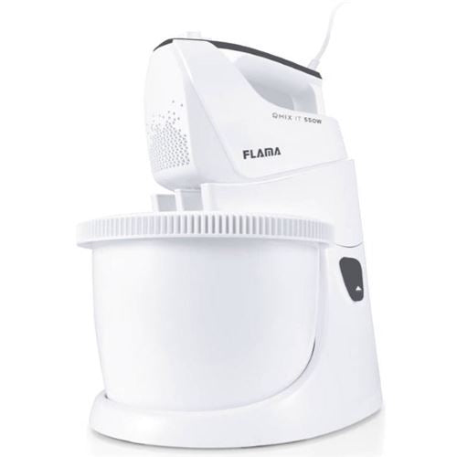 A batedeira Flama 1416FL tem uma potência máxima de 550W, 5 velocidades e taça rotativa com 3L de capacidade.
