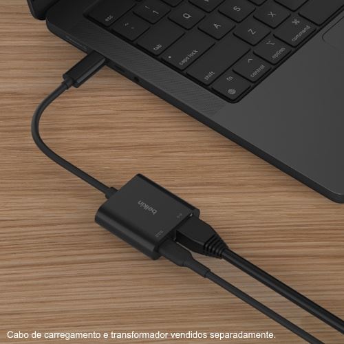 Adaptador + Carregador Belkin Rede Ethernet USB-C PD 100W - Preto