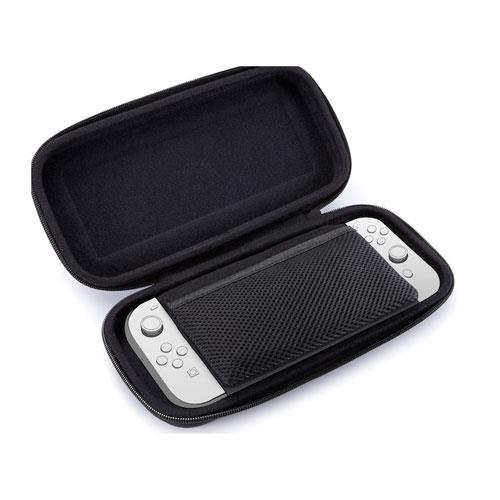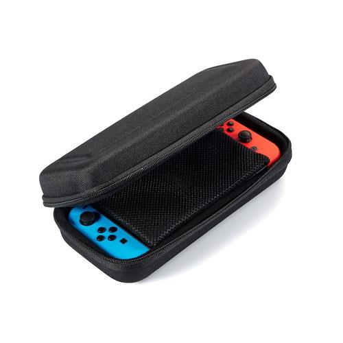 Bolsa de transporte rígida para NINTENDO Switch ™ ou NINTENDO Switch ™ Lite e comandos Joy-Con ™; Design e materiais estudados para proteger a consola de danos, compartimento interno para adaptador de corrente e jogos.