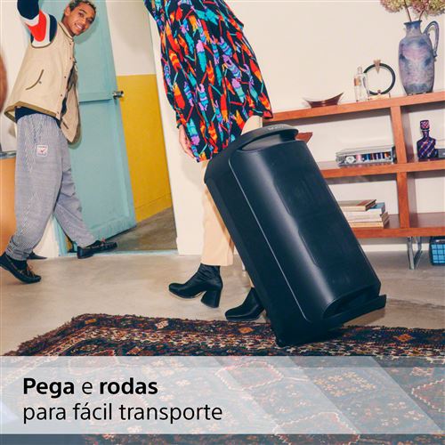 O Som de festa omnidirecional emite som potente para todos os cantos da divisão. Cinco tweeters produzem som nítido à frente e atrás da coluna. Além disso, é tudo complementado com graves potentes que pode sentir, graças à dupla X-Balanced Speaker Unit. Pode desfrutar desta magnífica experiência de som onde quiser com a bateria de maior autonomia da XV800, pega e rodas incorporadas.