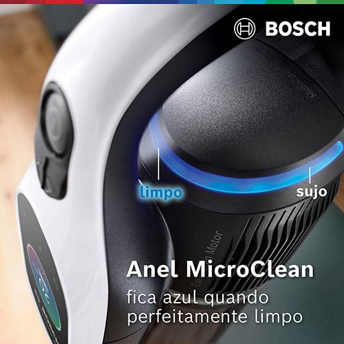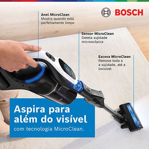 Escova MicroClean™: Desfrute da melhor remoção de pó da Bosch, que remove até partículas microscópicas com a escova MicroClean™.