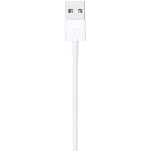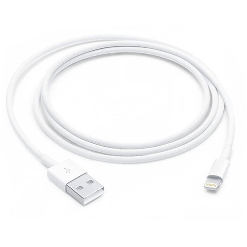 Este cabo USB 2 liga o seu dispositivo com conetor Lightning à porta USB do computador para sincronizar e carregar, ou ao Adaptador de corrente USB da Apple para carregar numa tomada.