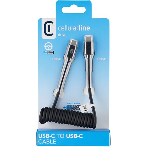 Cabo Espiral Cellularline Drive USB-C 1.2m - Preto