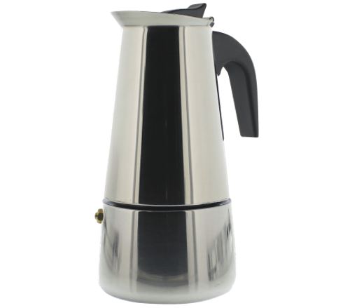 Cafeteira italiana Menz & Könecke, para preparação de café moído no fogão, em aço inox, com capacidade de 300 ml de água e preparada para placas de indução. Permite preparar 6 chávenas de café.
