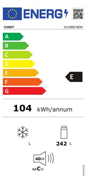 Frigorífico Candy CLH3S514EW | 143x54,5x55,5 cm | 242 L | E | Branco