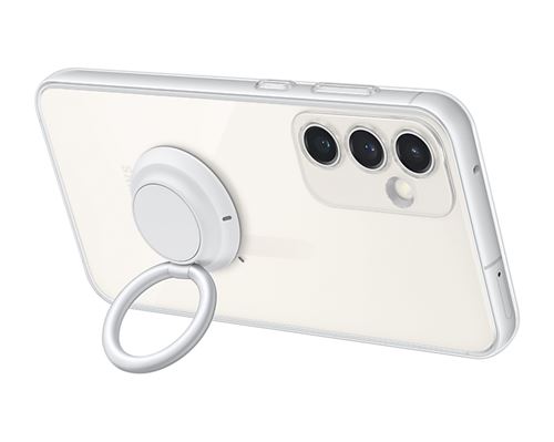 A capa vem com uma alça versátil que, quando fixada, permite que segures o telefone com mais segurança ou o uses como suporte para visualização com as mãos livres.