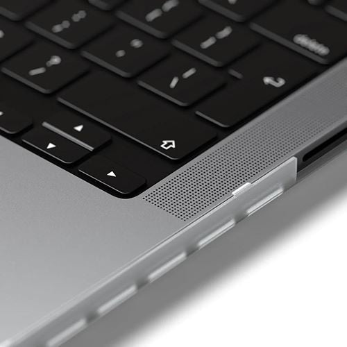 Capa translúcida em 2 peças para a base e topo do MacBook Pro 16 v2021. Tem tratamento anti-risco e dedadas, e pés de borracha na base.