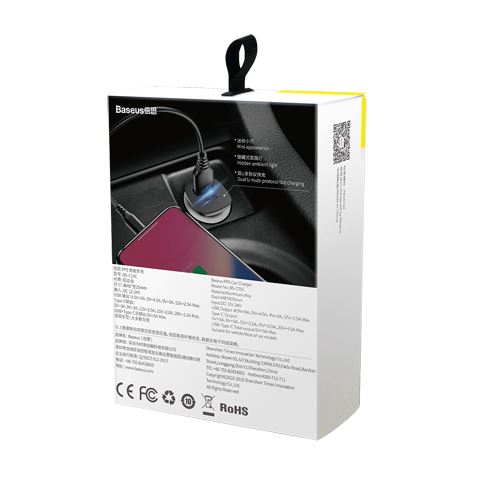 Carregador de Isqueiro Baseus USB+USB-C - Preto