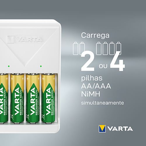4x Pilhas AA | 4x Pilhas AAA | Carrega 2 ou 4 pilhas em simultâneo