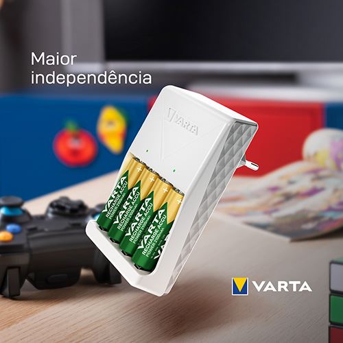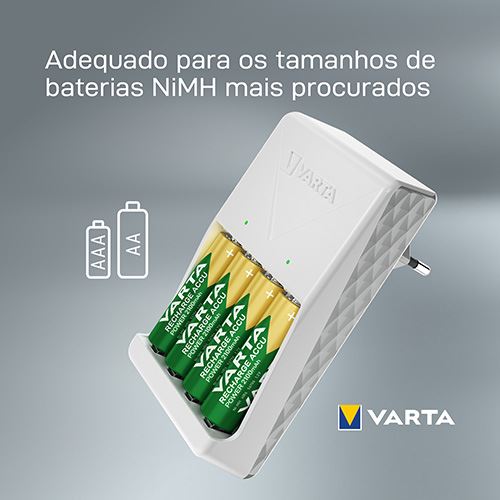 Carregador Varta Plug Charger AA/AAA + 4x Pilhas AA 2100mAh
