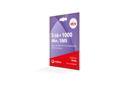 Cartão pré-pago para telemóvel por €9,9, pronto a usar com o tarifário Vodafone Ready: