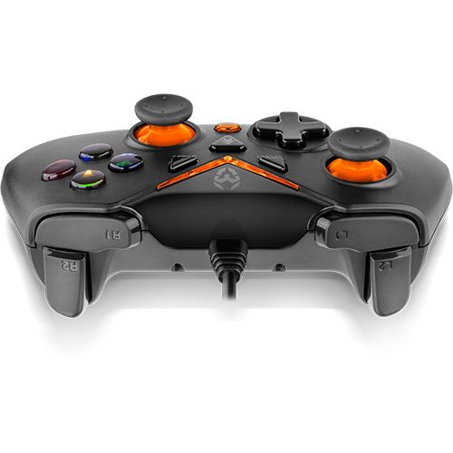 Motores de dupla vibração | Suporta modos X-Input e Direct-Input | Joystick e gatilhos analógicos | Botões principais retro iluminados | Função turbo