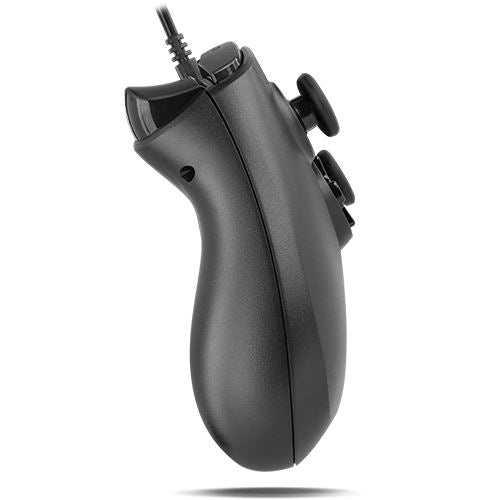 O cabo de 1,80 m confere liberdade de movimento suficiente para jogar no sofá ou numa secretária espaçosa, sem recorrer a extensões ou adaptadores. O formato compacto e ergonómico, com dimensões de 15 x 10,3 x 6,9 cm, adapta-se bem a mãos de várias dimensões, oferecendo um equilíbrio entre controlo e conforto durante sessões prolongadas. O peso de 230 g mantém o comando leve, reduzindo a fadiga muscular em jogadas longas.