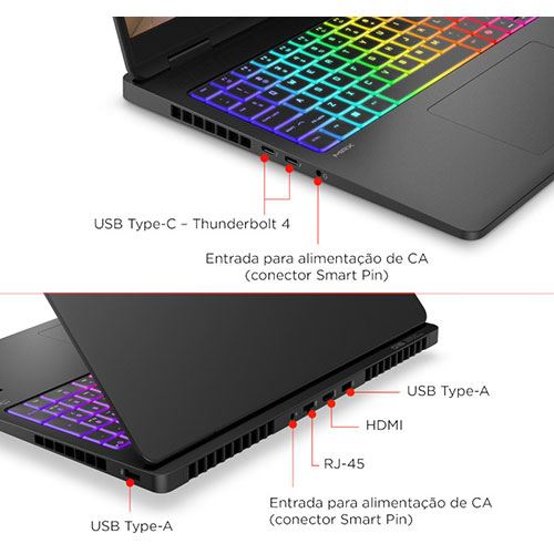 2x USB-C (DisplayPort 2.1) | 2x USB (10Gbps) | 1x HDMI 2.1 | 1x RJ-45 | 1x Jack 3.5mm (combo)