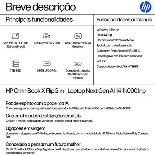 Computador Portátil HP OmniBook X Flip 2-em-1 Next Gen AI 14-fk0001np | 14" | AMD Ryzen™ AI 7 350 | 24GB | 1TB SSD