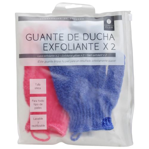 Cores sortidas: Turquesa e Cinzento e ou Azul e FucsiaLuva ideal para exfoliar a pele, tratamento de beleza ou no duche para eliminar pele mortaPara todo tipo de pele, lavável e reutilizável.