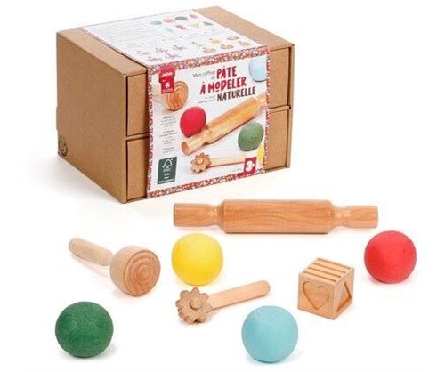 Abra espaço para a criatividade com esta caixa de massa de modelar natural. A caixa contém 4 potes de massa de modelar de 90 g e 4 acessórios em madeira certificada FSC. Elaboradas com ingredientes de origem natural ou da agricultura orgânica: milho 100% orgânico, sal certificado e água. Uma receita que respeita a saúde das crianças e o meio ambiente. A massa de modelar revela cores inspiradas na natureza: areia, esmeralda, papaia e azul celeste. Estas cores vegetais são feitas à base de corantes alimentares. A textura da massa de modelar é flexível e macia, ideal para ser manuseada por artistas iniciantes. Não cola aos dedos e não se desintegra. Dica prática: para manter a massa de modelar por mais tempo, coloque-a em local fresco, de preferência no frigorífico. Para restaurar a sua flexibilidade, basta embrulhar por alguns minutos num pano húmido. Terminou de brincar? Graças à sua composição natural, a massa de modelar pode ser compostada através da compostagem doméstica.