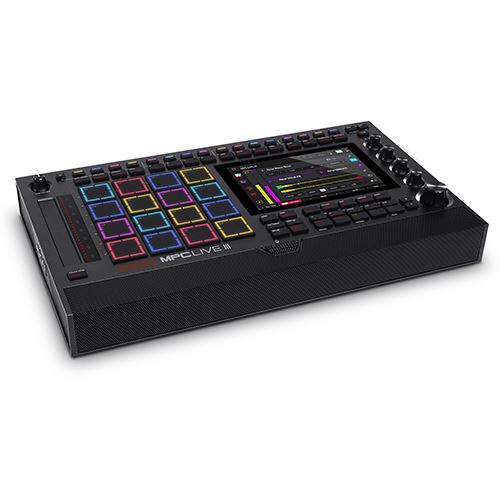 O MPC Live III apresenta funcionalidades inovadoras, como a tecnologia de pads expressivos MPCe ultra-responsivos, botões de sequenciador dedicados de 16 passos e uma faixa tátil de desempenho dinâmico. Alimentado pelo MPC3 OS, este sistema oferece o icónico fluxo de trabalho MPC com novo lançamento de clipes, arranjos de músicas e efeitos de estúdio.